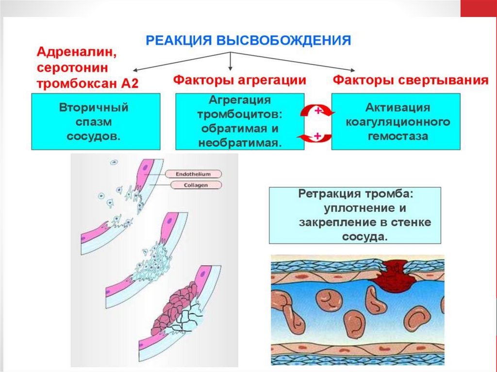 агрегация тромбоцитов и ретракция кровяного сгустка. Ионы