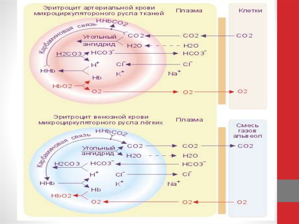 тканей к лёгким, также осуществляет перенос питательных веществ от