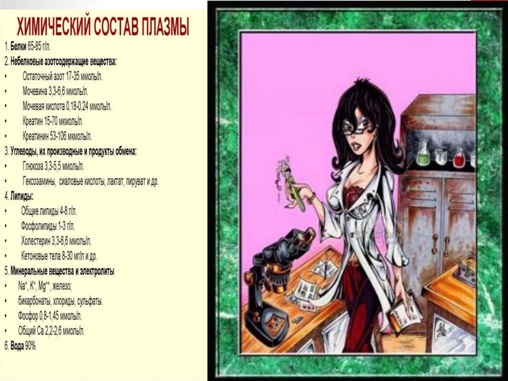 1. Плазма – раствор белков, электролитов,моносахаридов, азотсодержащих
