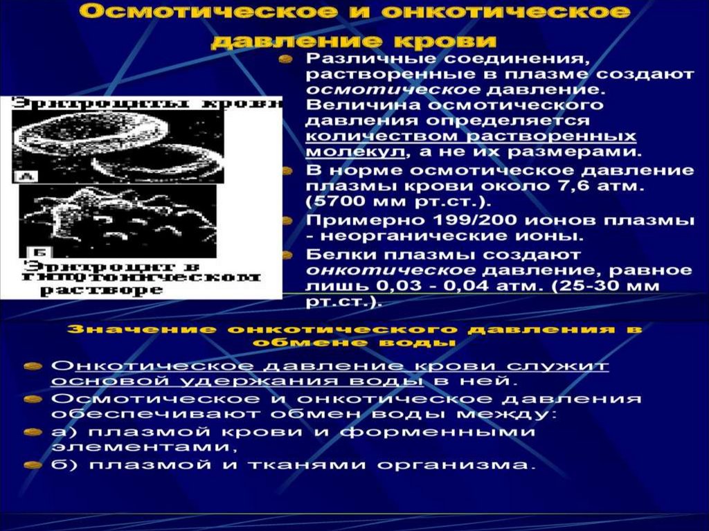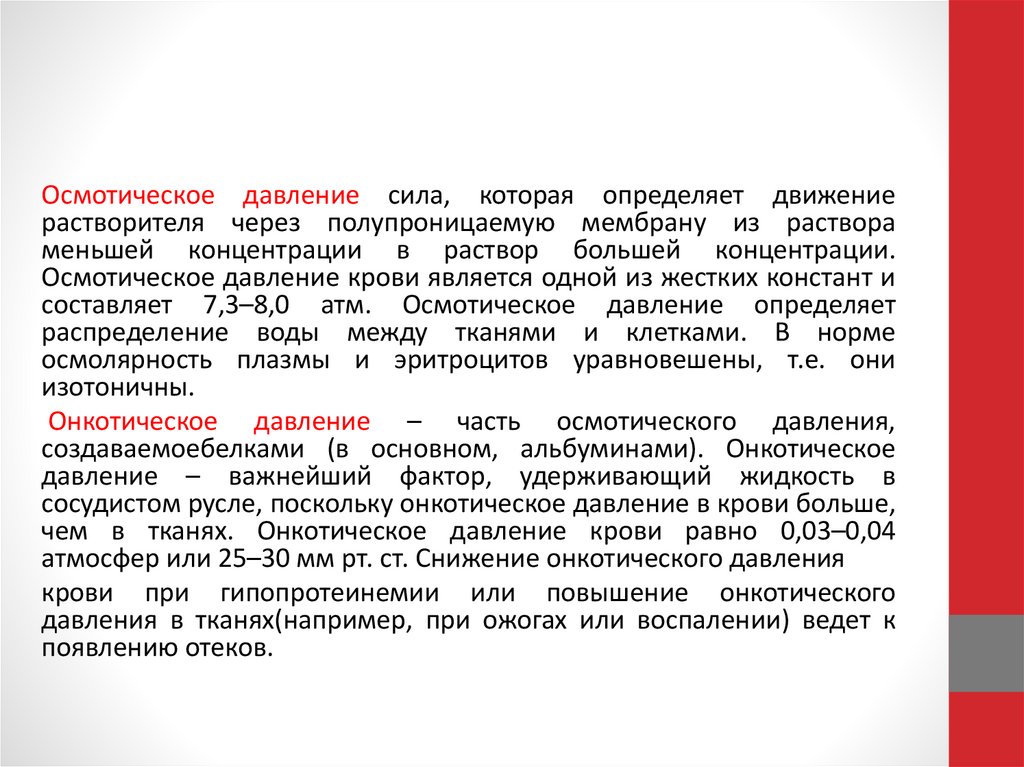 составляет 7,3–8,0 атм. Осмотическое давление определяет
