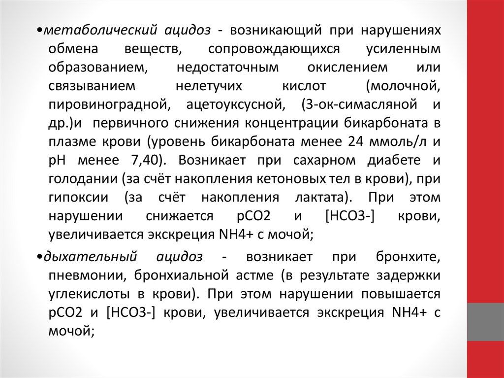 Отклонение рН в кислую сторону называется ацидозом, а в щелочную –