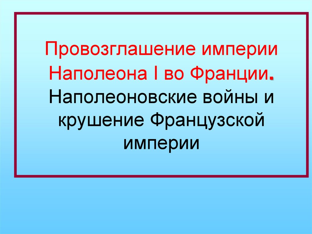 1. Провозглашение империи Наполеона I во Франции. Наполеоновские войны и крушение Французской империи