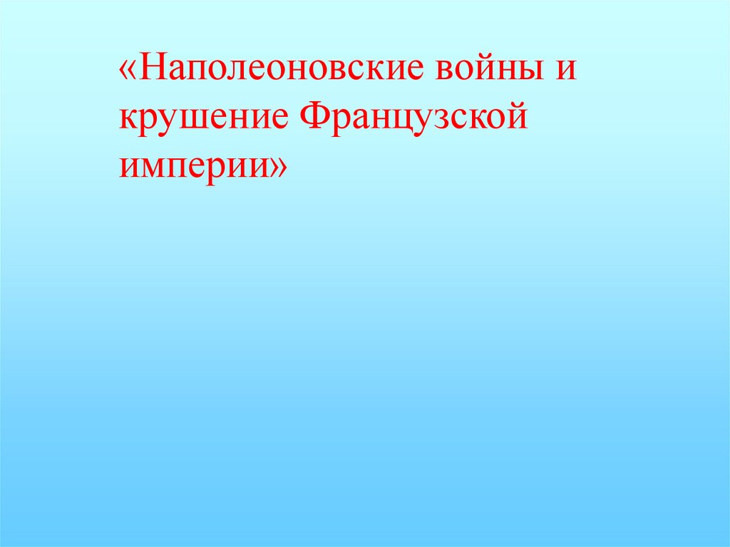 Провозглашение империи Наполеона I во Франции. Наполеоновские войны и крушение Французской империи