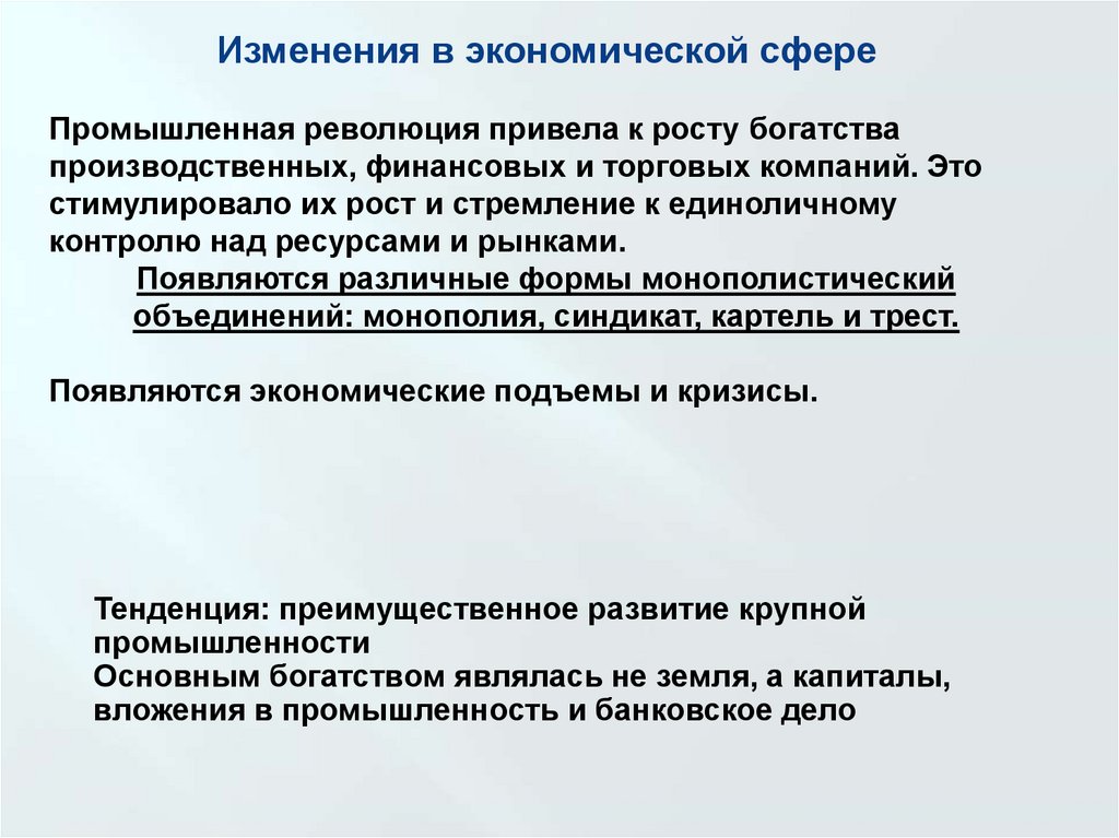 Изменения в экономической сфереПромышленная революция привела к росту богатства