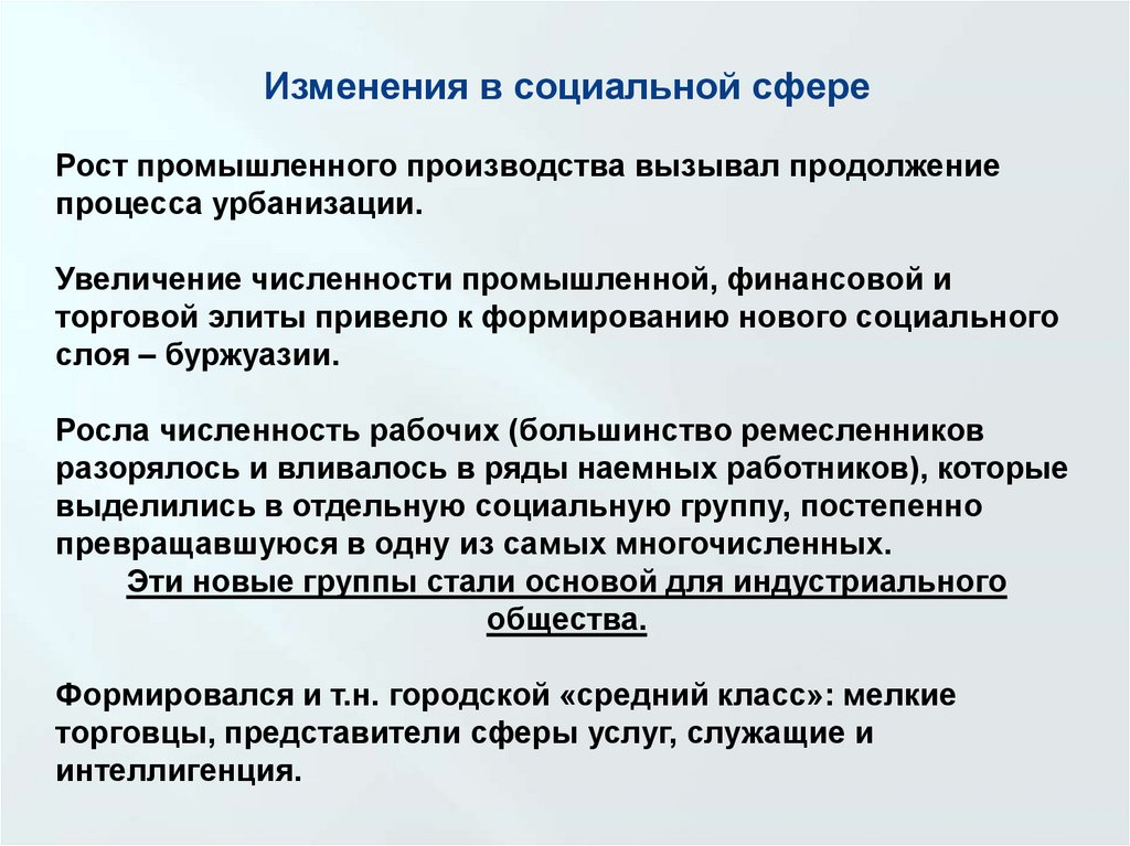 Изменения в социальной сфереРост промышленного производства вызывал продолжение