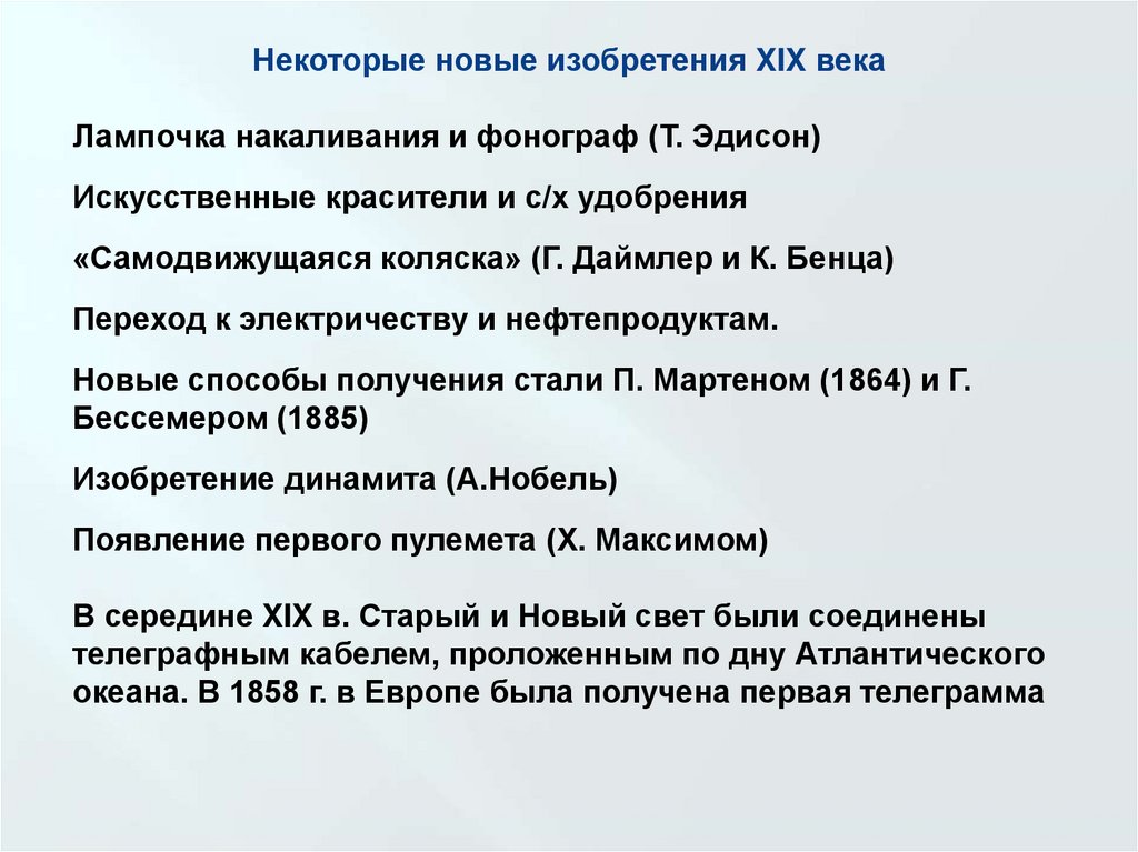 Некоторые новые изобретения XIX векаЛампочка накаливания и фонограф (Т. Эдисон)