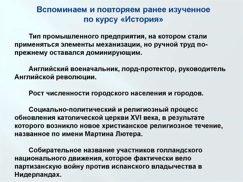 Вспоминаем и повторяем ранее изученноепо курсу «История»