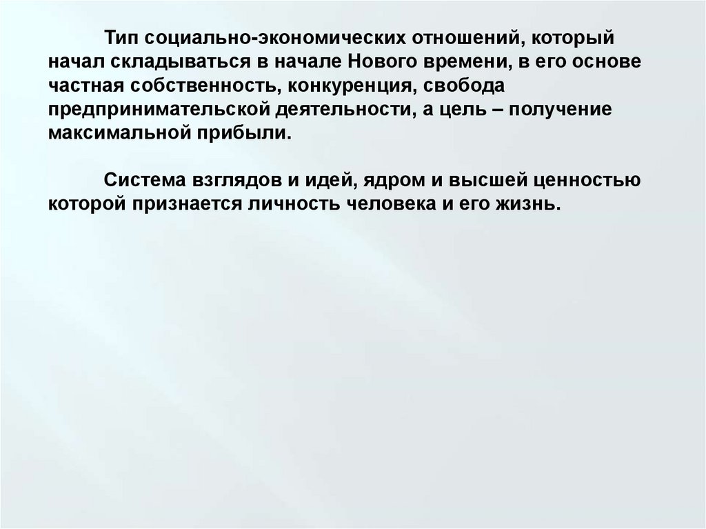 Тип социально-экономических отношений, которыйначал складываться в начале Нового времени, в его основе