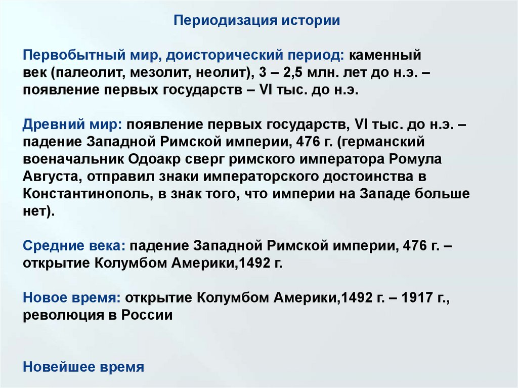 Новое время: открытие Колумбом Америки,1492 г. – 1917 г.,