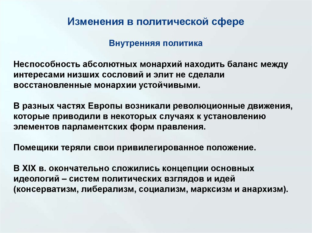 (консерватизм, либерализм, социализм, марксизм и анархизм).