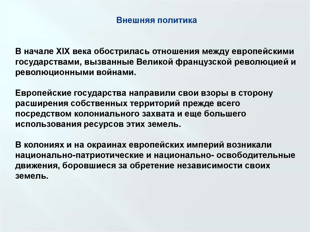 Внешняя политикаВ начале XIX века обострилась отношения между европейскими