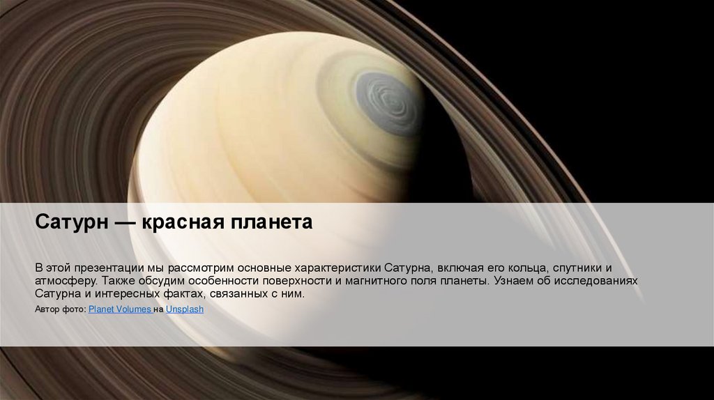 Сатурн — красная планетаВ этой презентации мы рассмотрим основные характеристики Сатурна, включая его кольца, спутники и