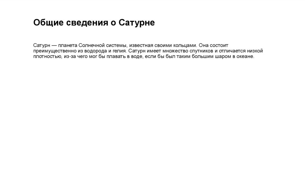 Общие сведения о СатурнеСатурн — планета Солнечной системы, известная своими кольцами. Она состоит