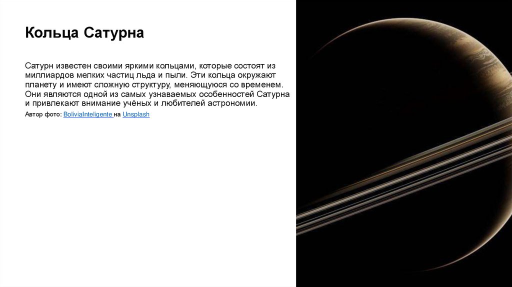 Кольца СатурнаСатурн известен своими яркими кольцами, которые состоят из