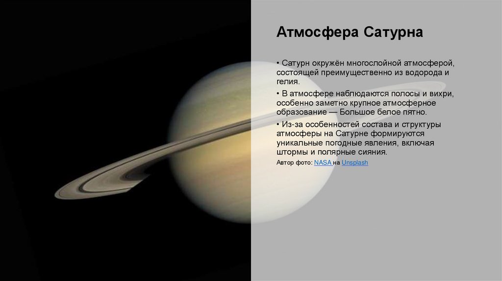 преимущественно из водорода и гелия. Сатурн имеет множество спутников и отличается низкой