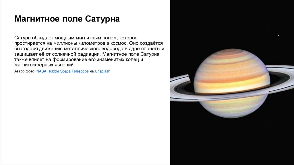 защищает её от солнечной радиации. Магнитное поле Сатурна