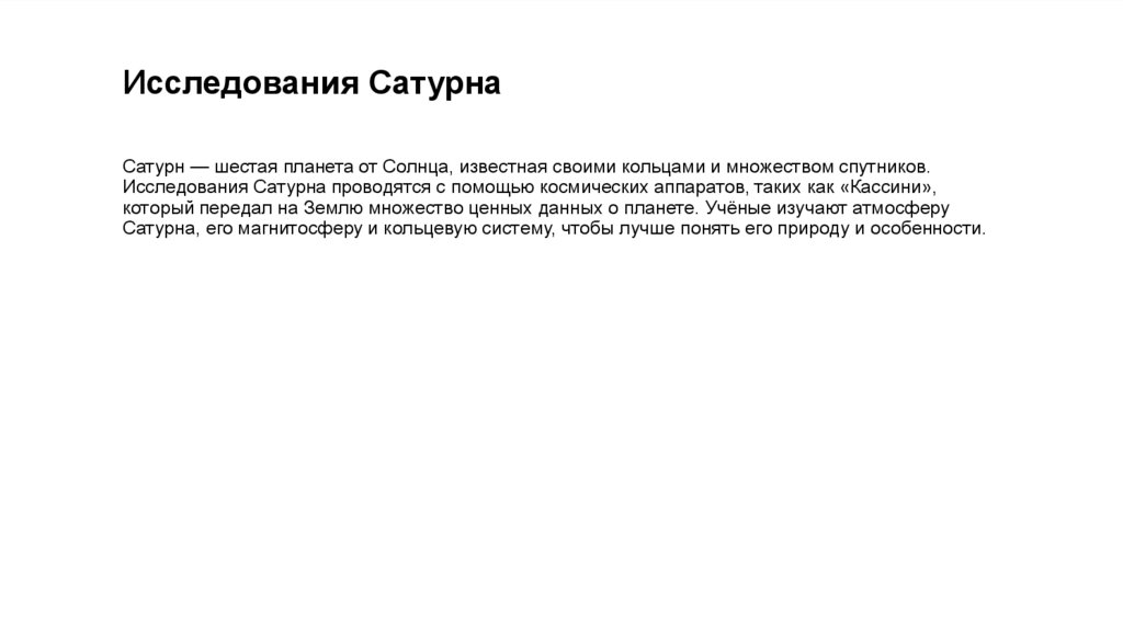 Исследования СатурнаСатурн — шестая планета от Солнца, известная своими кольцами и множеством спутников.