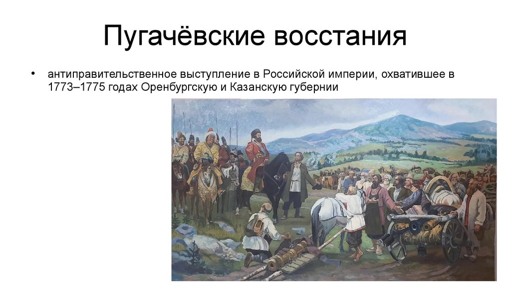 Пугачёвские восстанияантиправительственное выступление в Российской империи, охватившее в