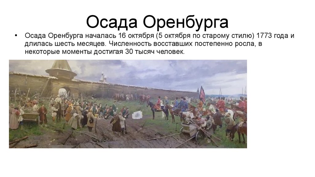Осада ОренбургаОсада Оренбурга началась 16 октября (5 октября по старому стилю) 1773 года и