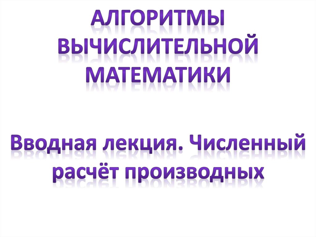 Алгоритмы вычислительной математики. Вводная лекция. Численный расчёт производных