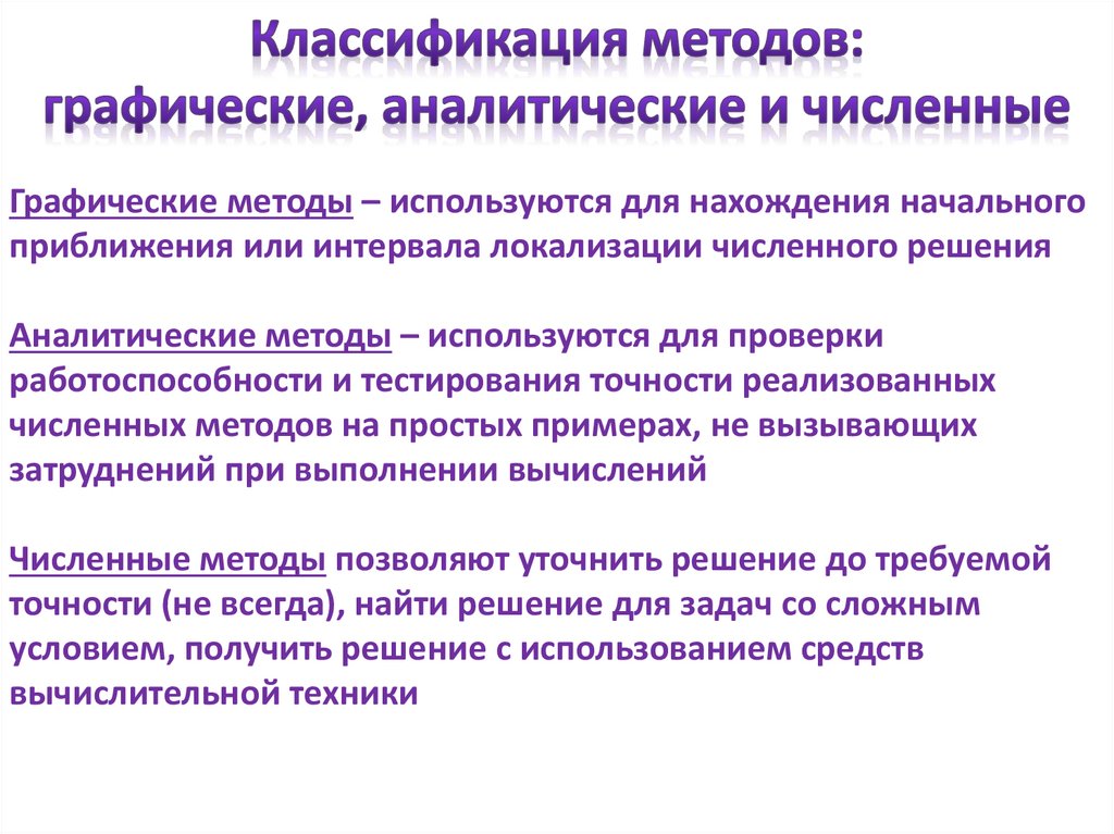 Графические методы – используются для нахождения начальногоприближения или интервала локализации численного решения
