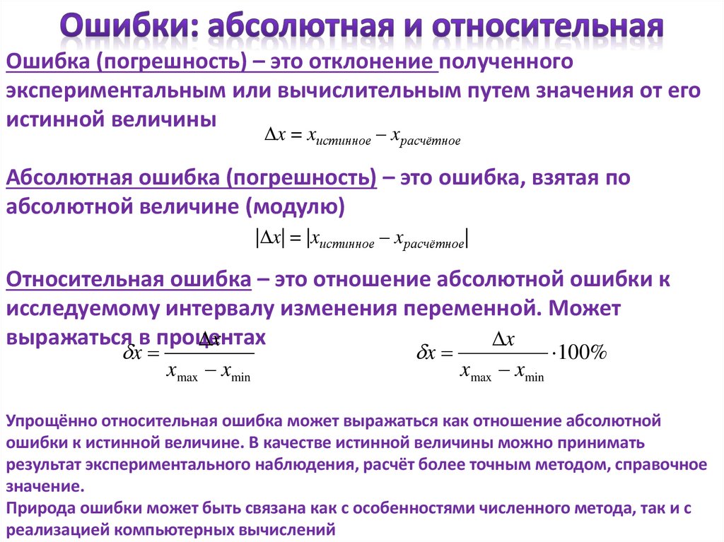 Ошибка (погрешность) – это отклонение полученногоэкспериментальным или вычислительным путем значения от его