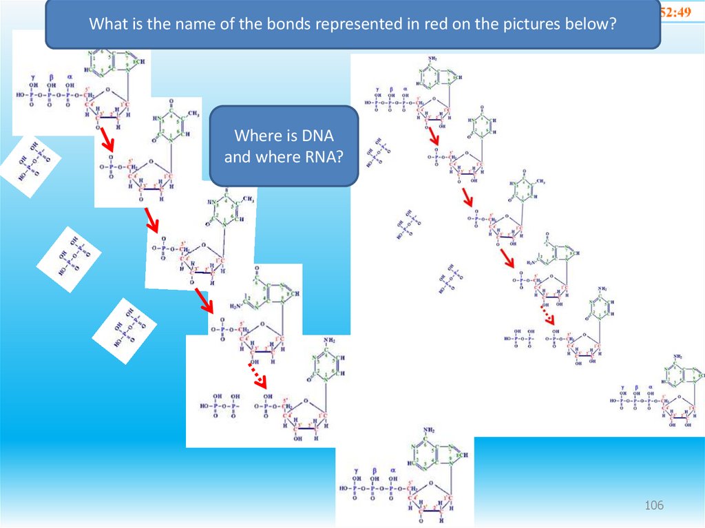 What is the name of the bonds represented in red on the pictures below?Where is DNA
