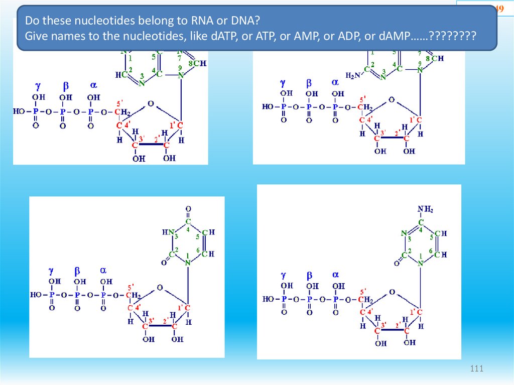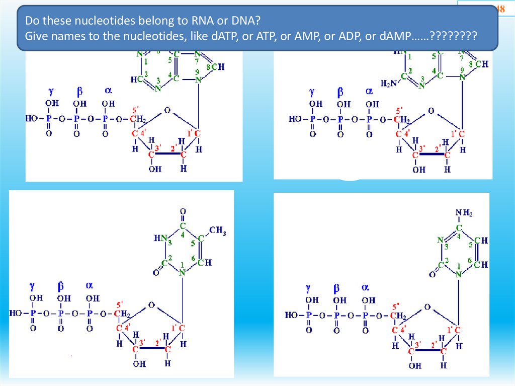 Do these nucleotides belong to RNA or DNA?Give names to the nucleotides, like dATP, or ATP, or AMP, or ADP, or dAMP……????????