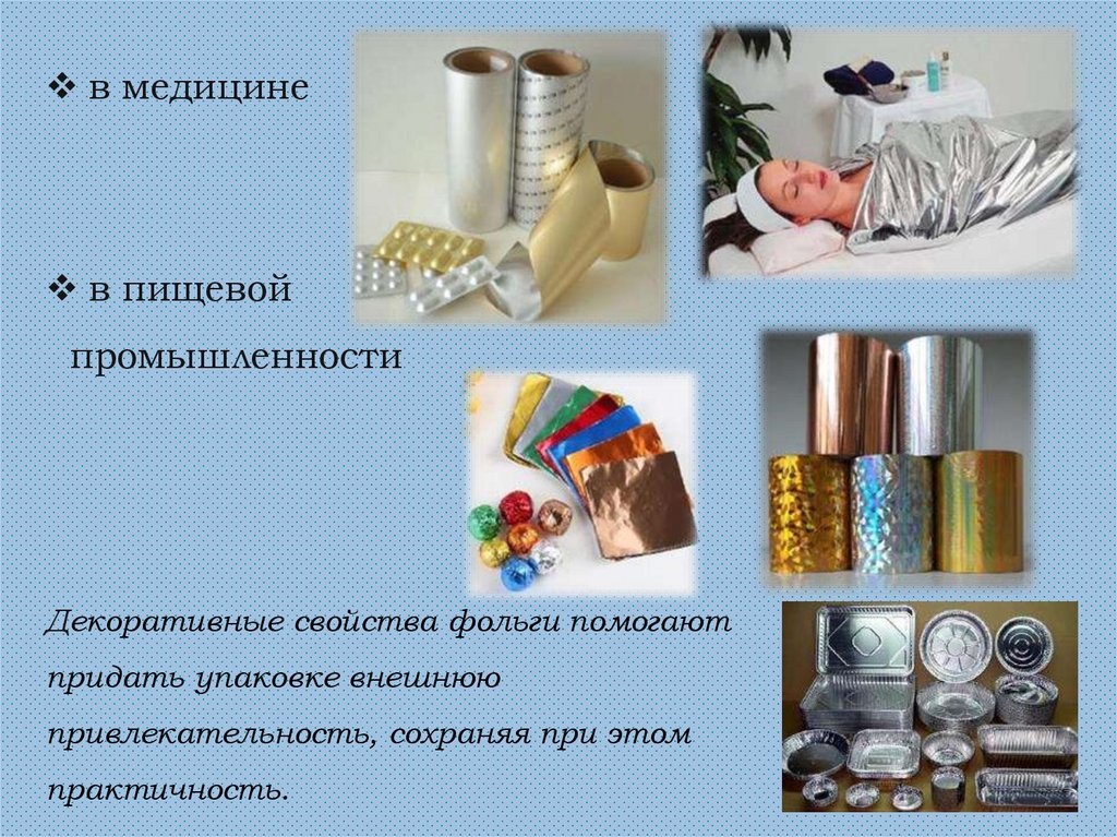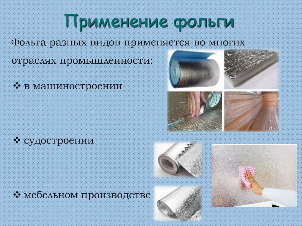 Применение фольгиФольга разных видов применяется во многих