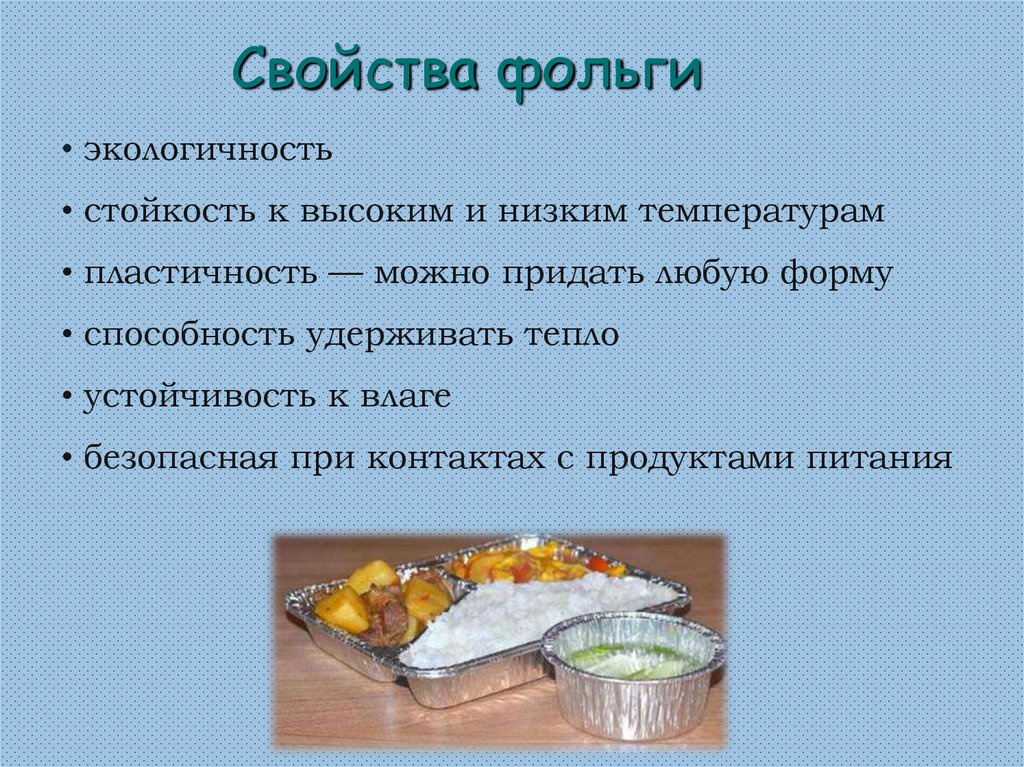Свойства фольги• экологичность