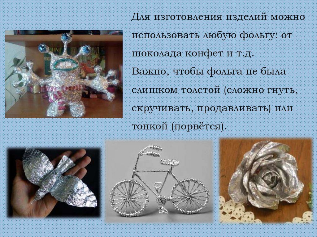 Для изготовления изделий можноиспользовать любую фольгу: от