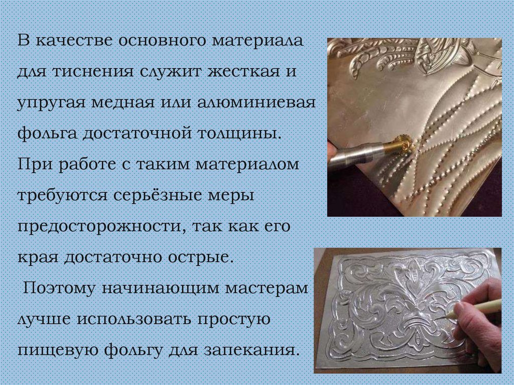 В качестве основного материаладля тиснения служит жесткая и