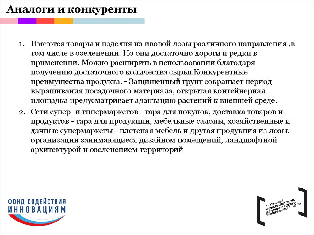 Аналоги и конкуренты1. Имеются товары и изделия из ивовой лозы различного направления ,в