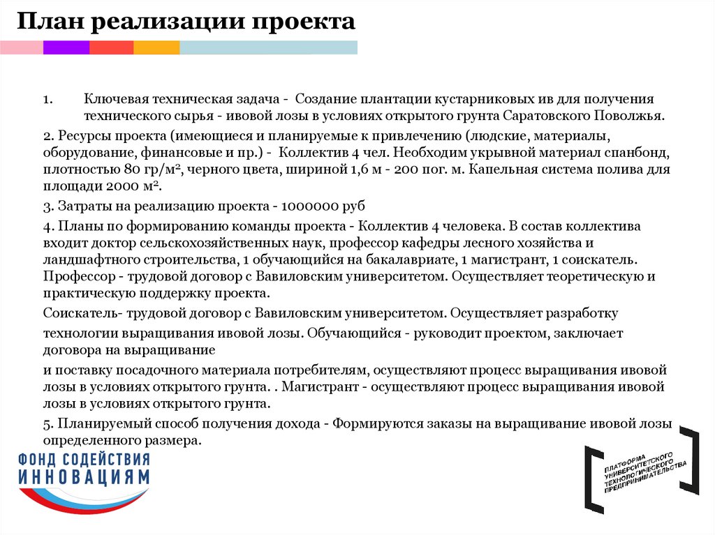 5. Планируемый способ получения дохода - Формируются заказы на выращивание ивовой лозы