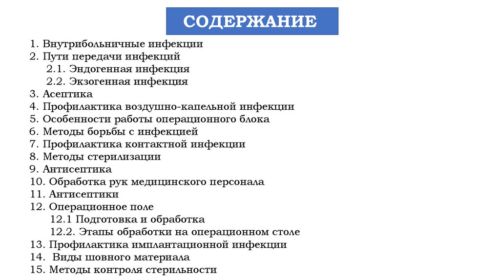 СОДЕРЖАНИЕ1. Внутрибольничные инфекции
