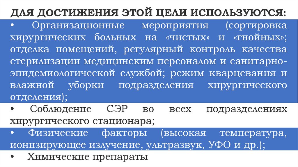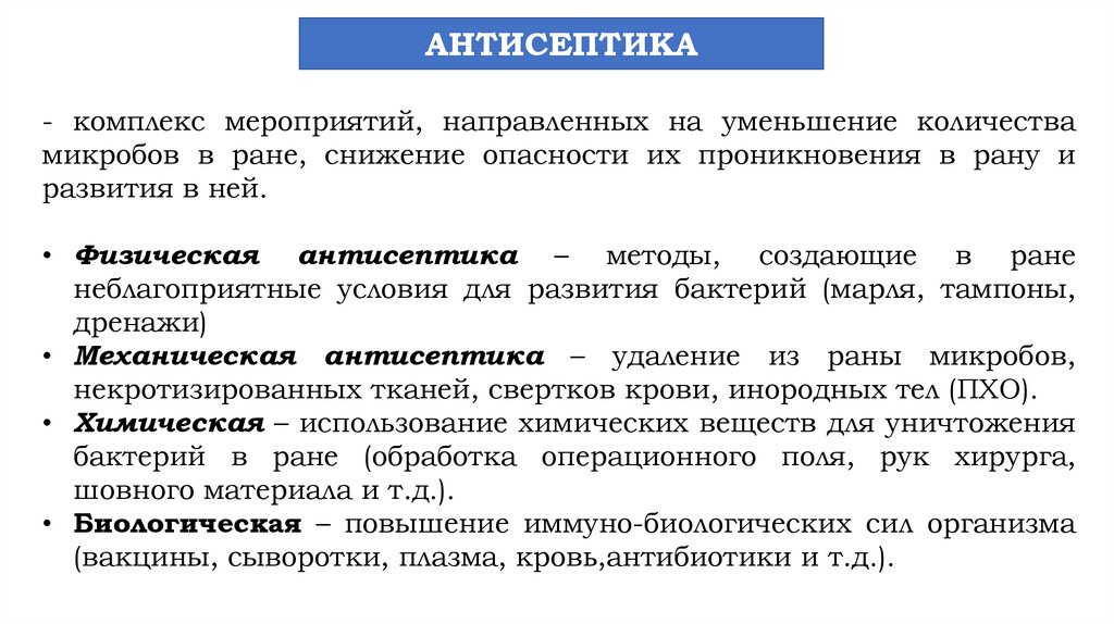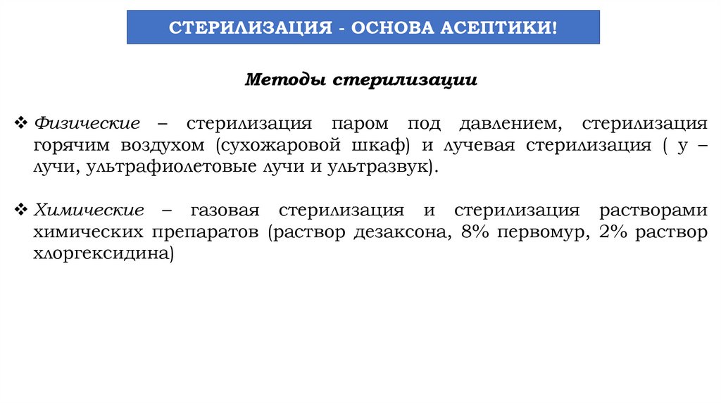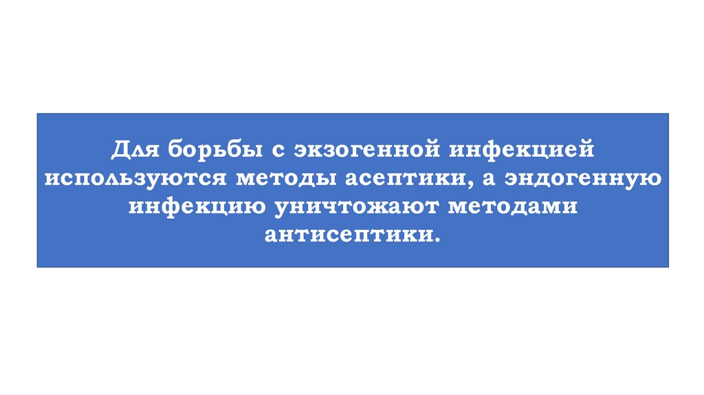 Для борьбы с экзогенной инфекциейиспользуются методы асептики, а эндогенную