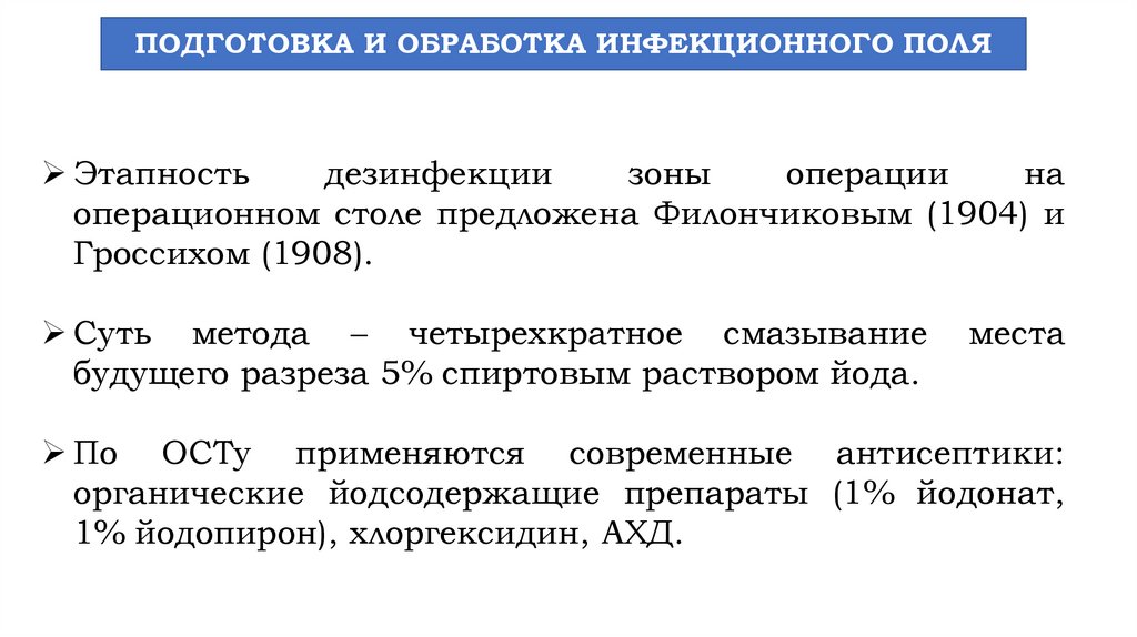 ПОДГОТОВКА И ОБРАБОТКА ИНФЕКЦИОННОГО ПОЛЯЭтапность