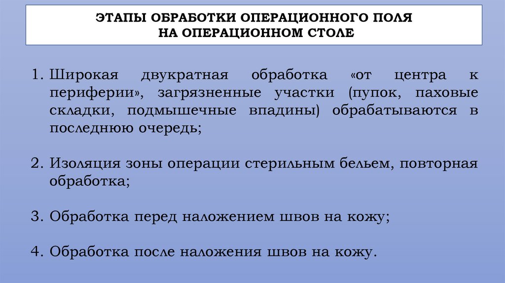 ЭТАПЫ ОБРАБОТКИ ОПЕРАЦИОННОГО ПОЛЯНА ОПЕРАЦИОННОМ СТОЛЕ
