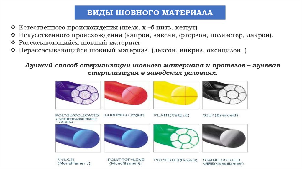 ВИДЫ ШОВНОГО МАТЕРИАЛАЕстественного происхождения (шелк, х –б нить, кетгут)