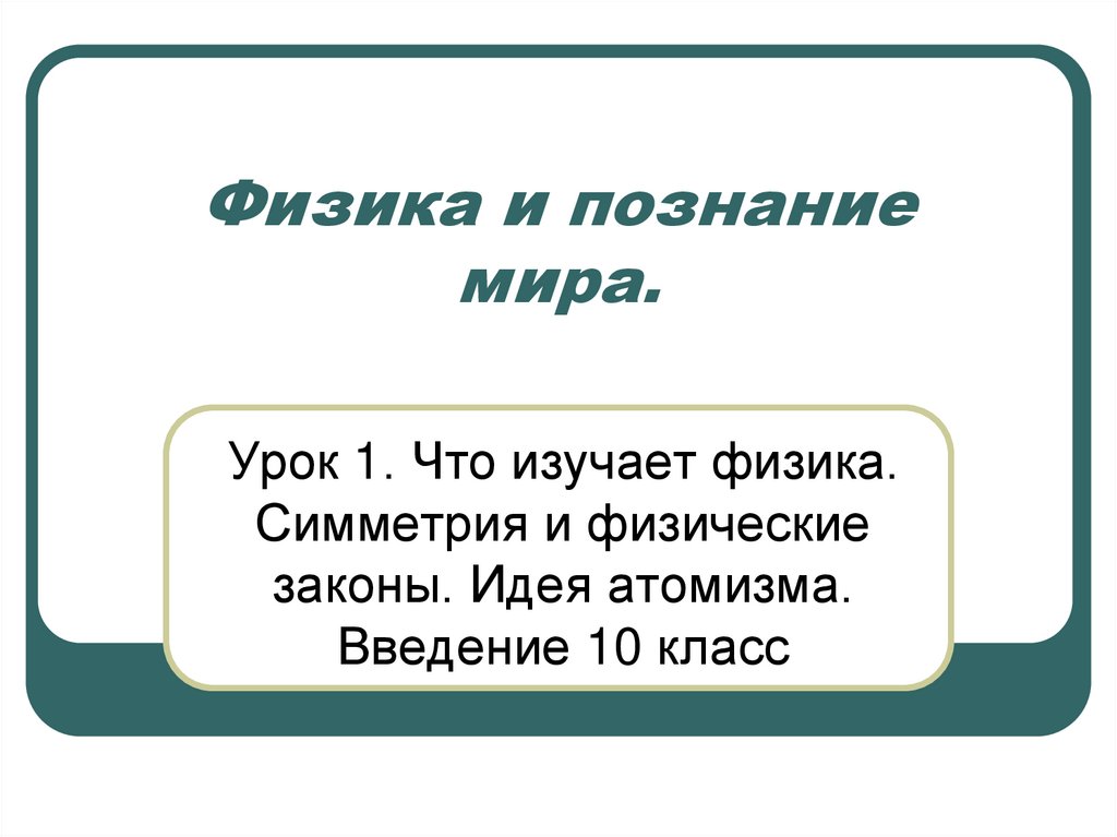 Что изучает физика? Симметрия и физические законы. Идея атомизма. Введение 10 класс