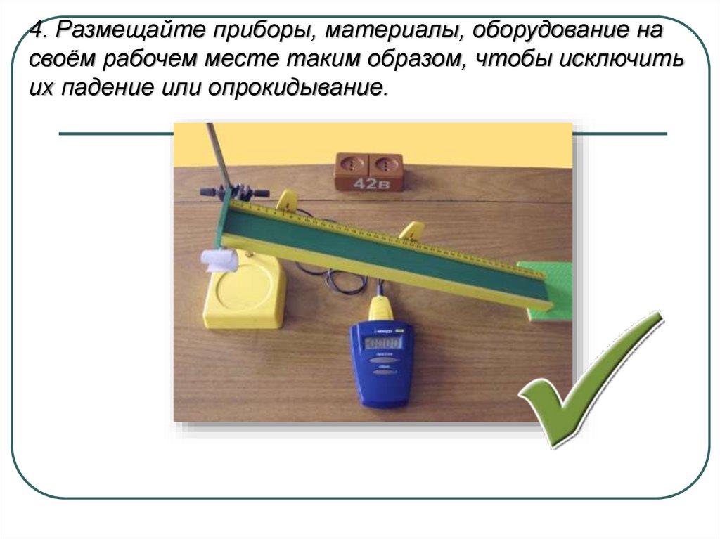 4. Размещайте приборы, материалы, оборудование насвоём рабочем месте таким образом, чтобы исключить