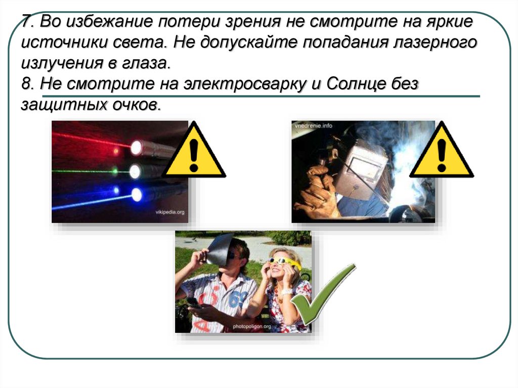7. Во избежание потери зрения не смотрите на яркиеисточники света. Не допускайте попадания лазерного