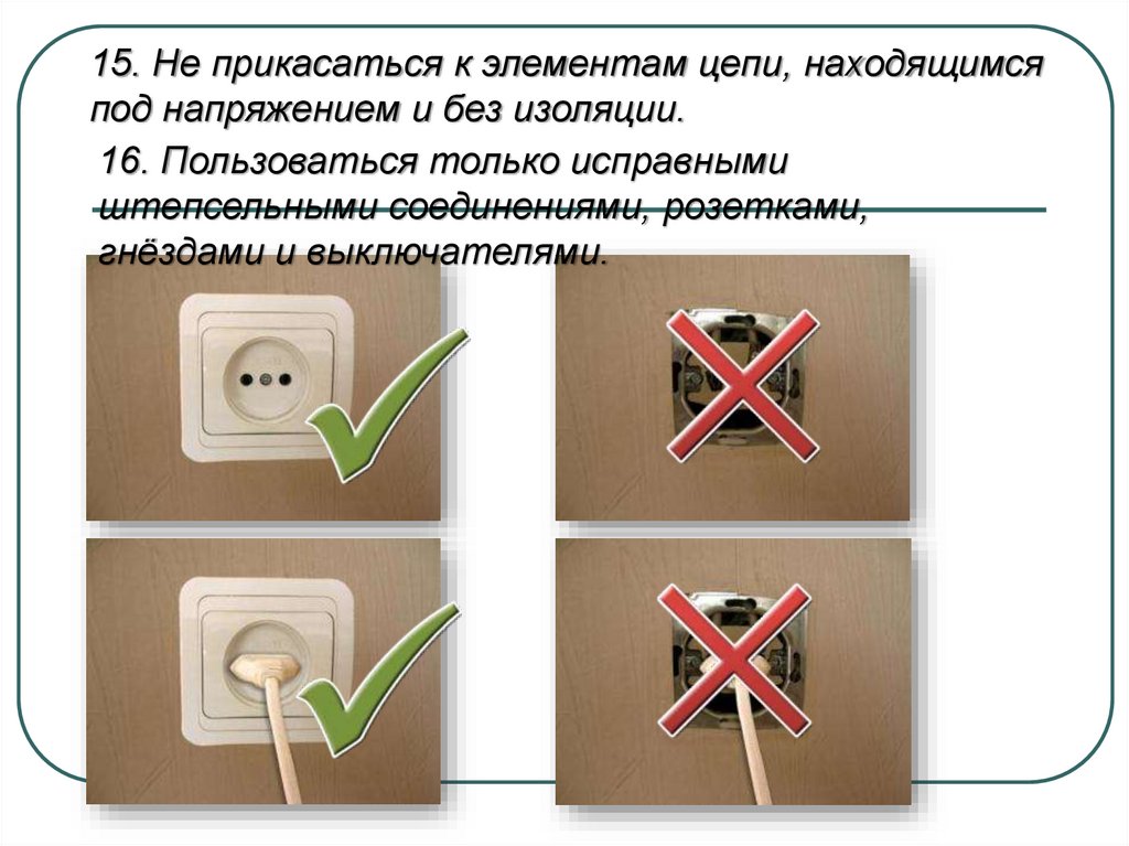 15. Не прикасаться к элементам цепи, находящимсяпод напряжением и без изоляции.