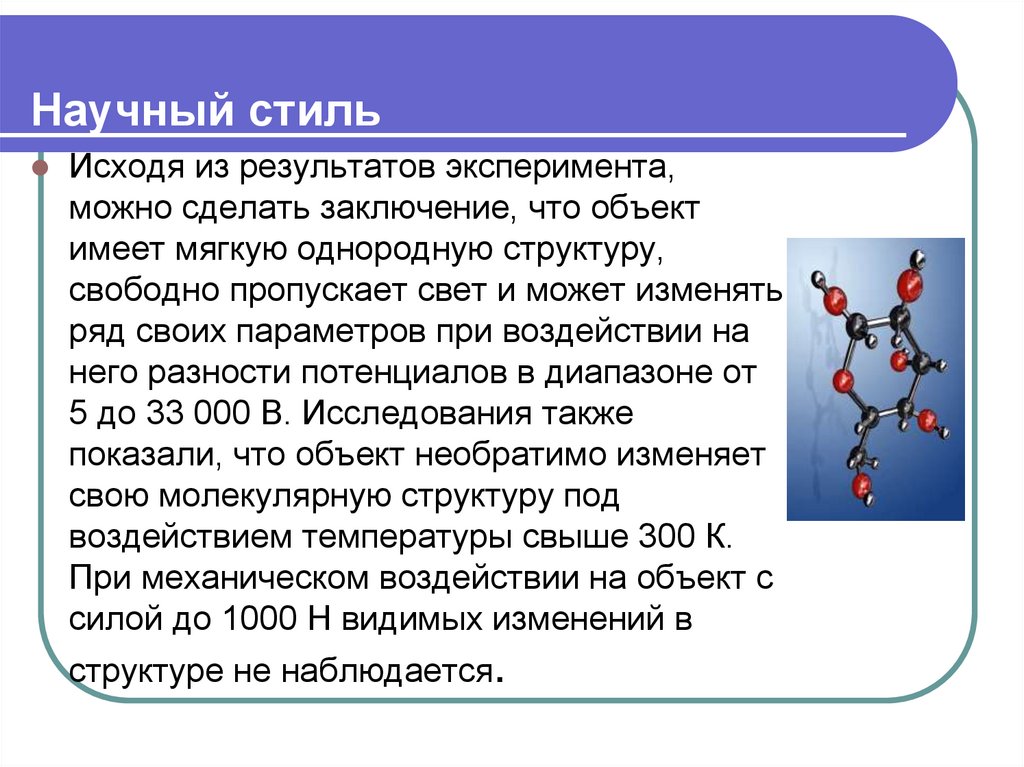 1.С какой целью говоримСообщение научных сведений, объяснение фактов.2. Сфера применения Научная литература, учебная литература, научный мир