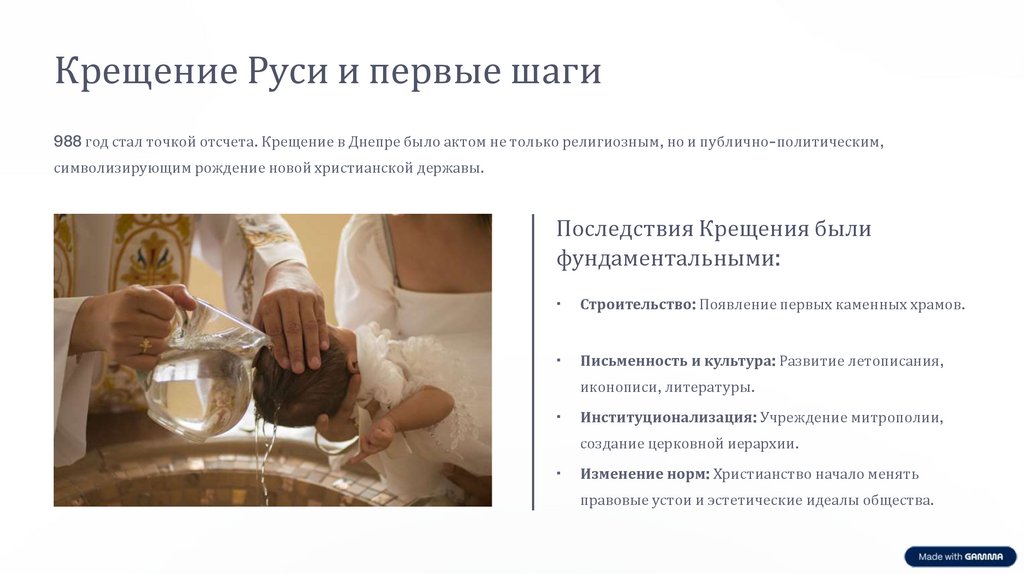 Крещение Руси и первые шаги988 год стал точкой отсчета. Крещение в Днепре было актом не только религиозным, но и публично-политическим,