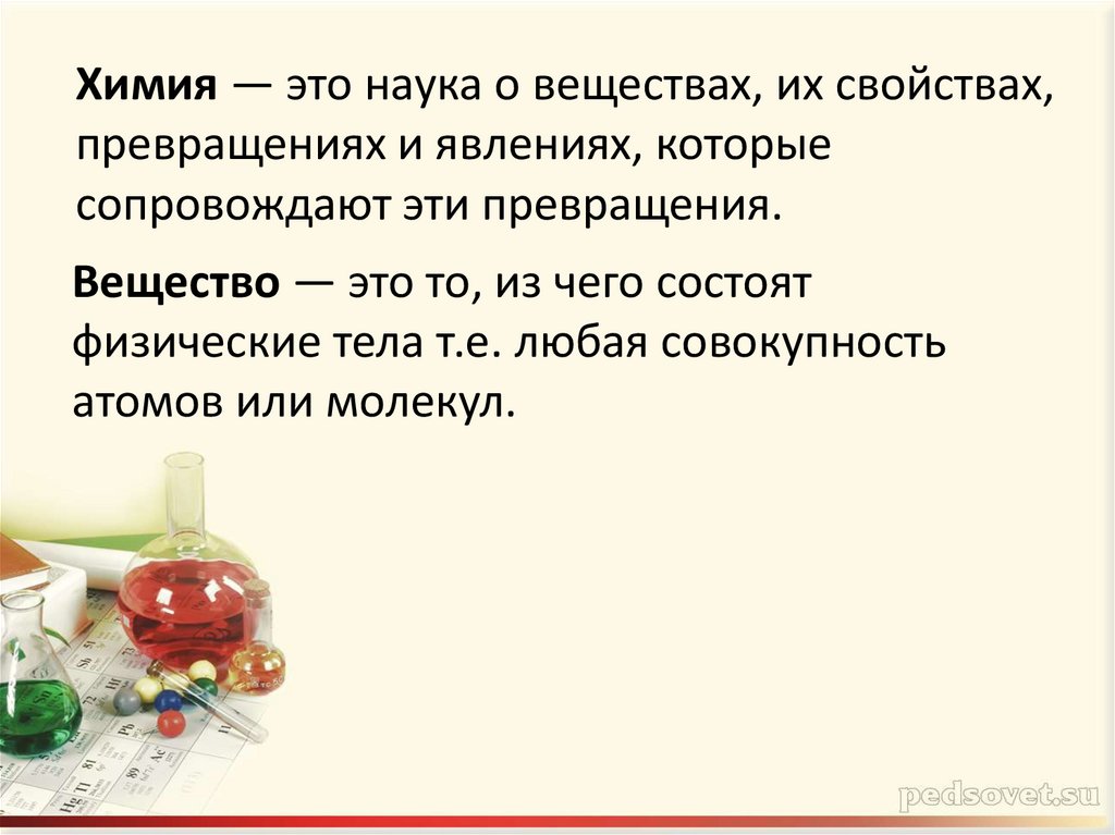 Химия — это наука о веществах, их свойствах,превращениях и явлениях, которые