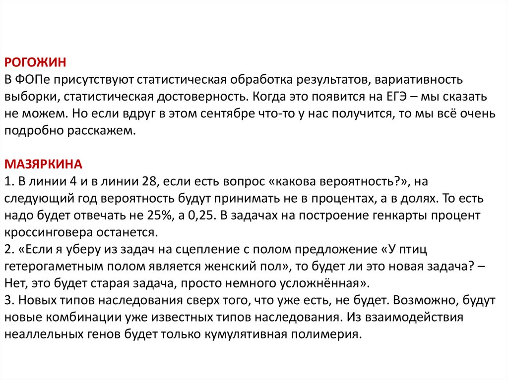будущем их в ЕГЭ будет меньше, а общей биологии – больше (ждем выхода
