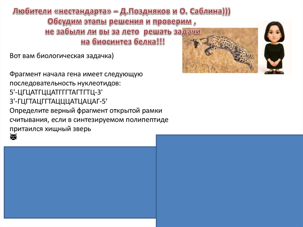 Вот вам биологическая задачка)Фрагмент начала гена имеет следующую