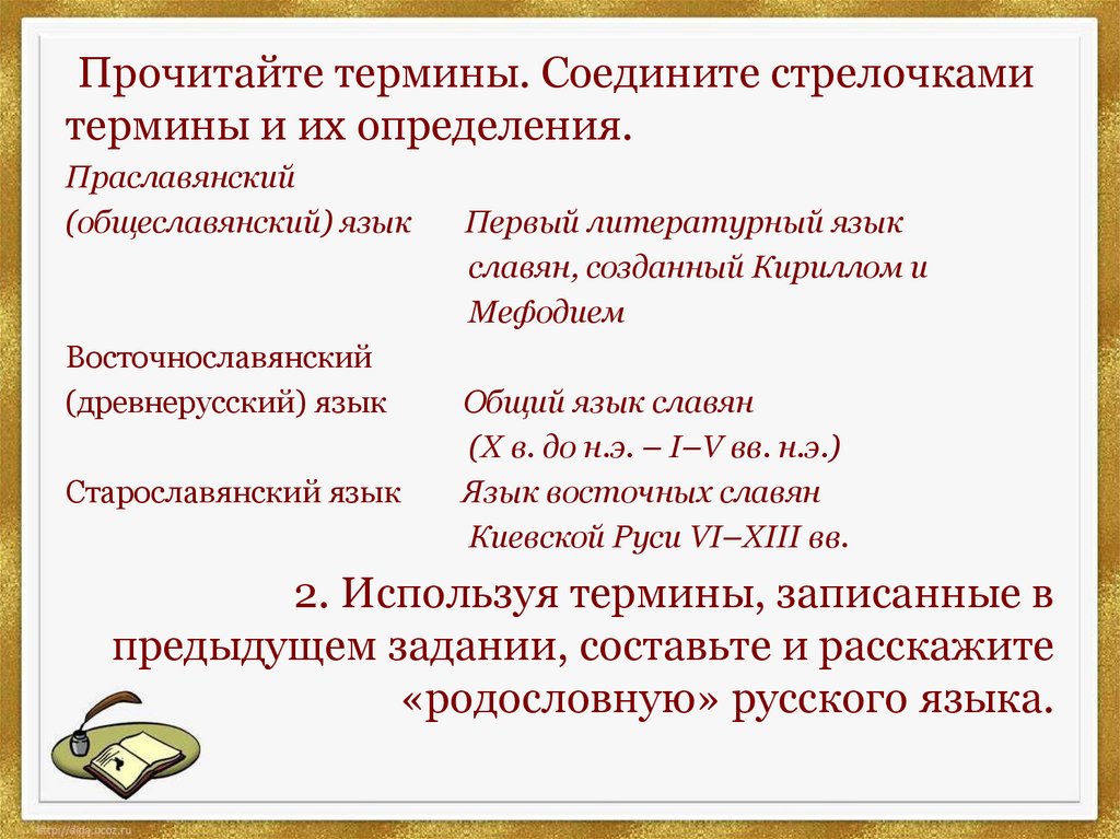 • При написании используйтесловосочетания: праславянский язык,
