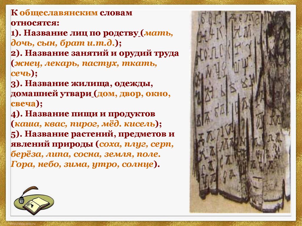 язык), общеславянские слова, древнейшие